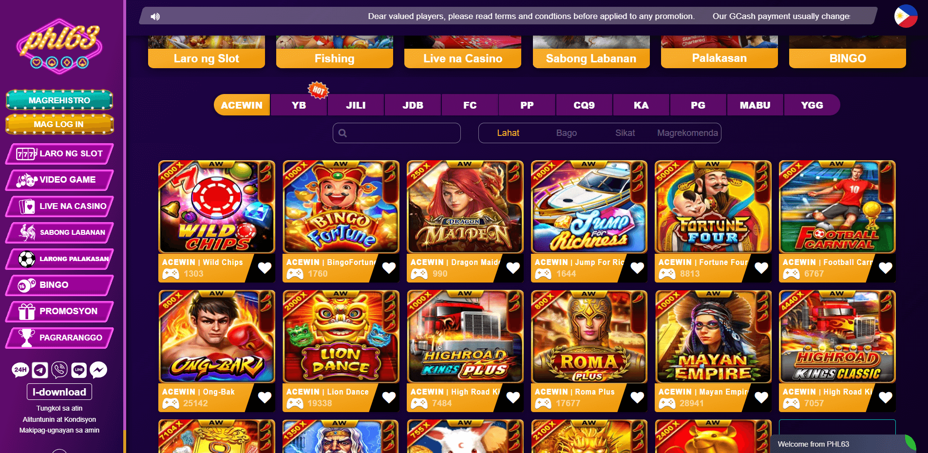 phl63 lists a portfolio of 2000 games and names JILI, FC, JDB, and CQ9 among its providers. A library of that size commonly includes slots, fish games, arcade-style titles, table games, and other casino categories, giving players broad variety instead of a narrow catalog.